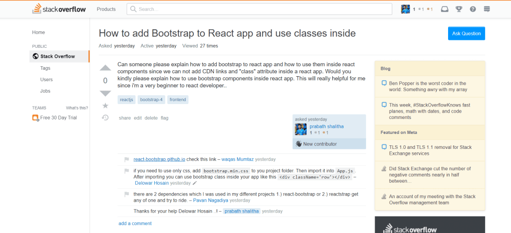 - We can Ask questions. (Here i asked my question regarding react development)